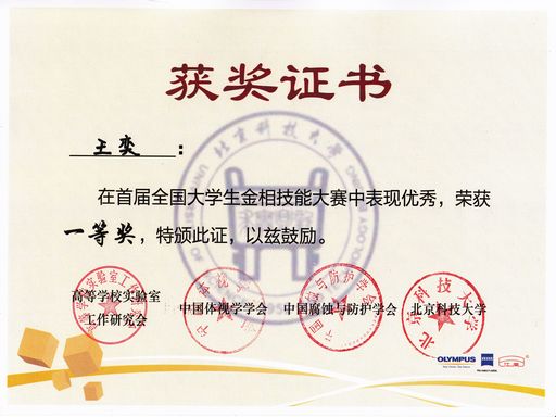 代表队在北京科技大学参加了首届全国大学生金相技能大赛的角逐,最终表现出色,喜获佳绩。