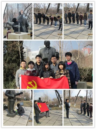 科技园马祖光院士的全身雕像前,准备祭奠这位伟大的学者、院士,这位杰出的共产党员。来到这里,大家首先组织清扫马祖光院士塑像,同学们认真擦拭着雕像的每一个部位,一举一动都带着对马祖光教授的尊敬与怀念之情。认真清扫过雕像后,大家整齐地站在雕像前三鞠躬并集体默哀一分钟以寄托对马院士的哀思。默哀结束后,预备党员代表向雕像敬献了鲜花,10本材科党支部书记马靖博向大家讲述了马祖光院士的生平事迹与成就。最后大家在一起重温了入党誓词并怀中无比崇敬与怀念的心情与院士雕像合影留念。