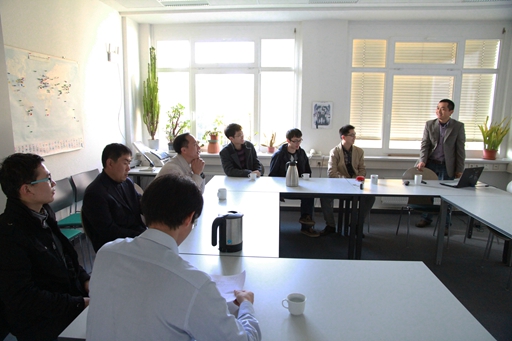 我院博士生与德方人员交流学术问题
