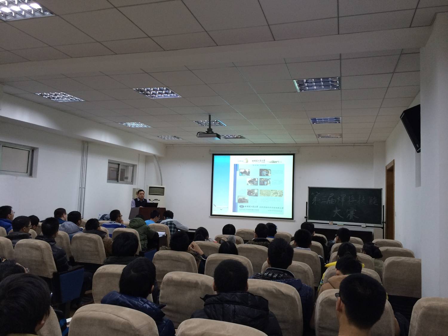整个过程先是主持人对整个大赛的流程进行简单说明,让同学们更多地了解到了此次焊接技能大赛的内容以及意义。接着张建老师为同学们带来精彩的培训,张建老师介绍了焊接重点实验室的先进仪器以及各个仪器的用途,向同学们普及了焊接基础知识同时为同学们带来了精彩的图片。张建老师精彩的培训内容激起了同学们浓厚的兴趣,相信这也激发了同学们对自己所学专业的向往。