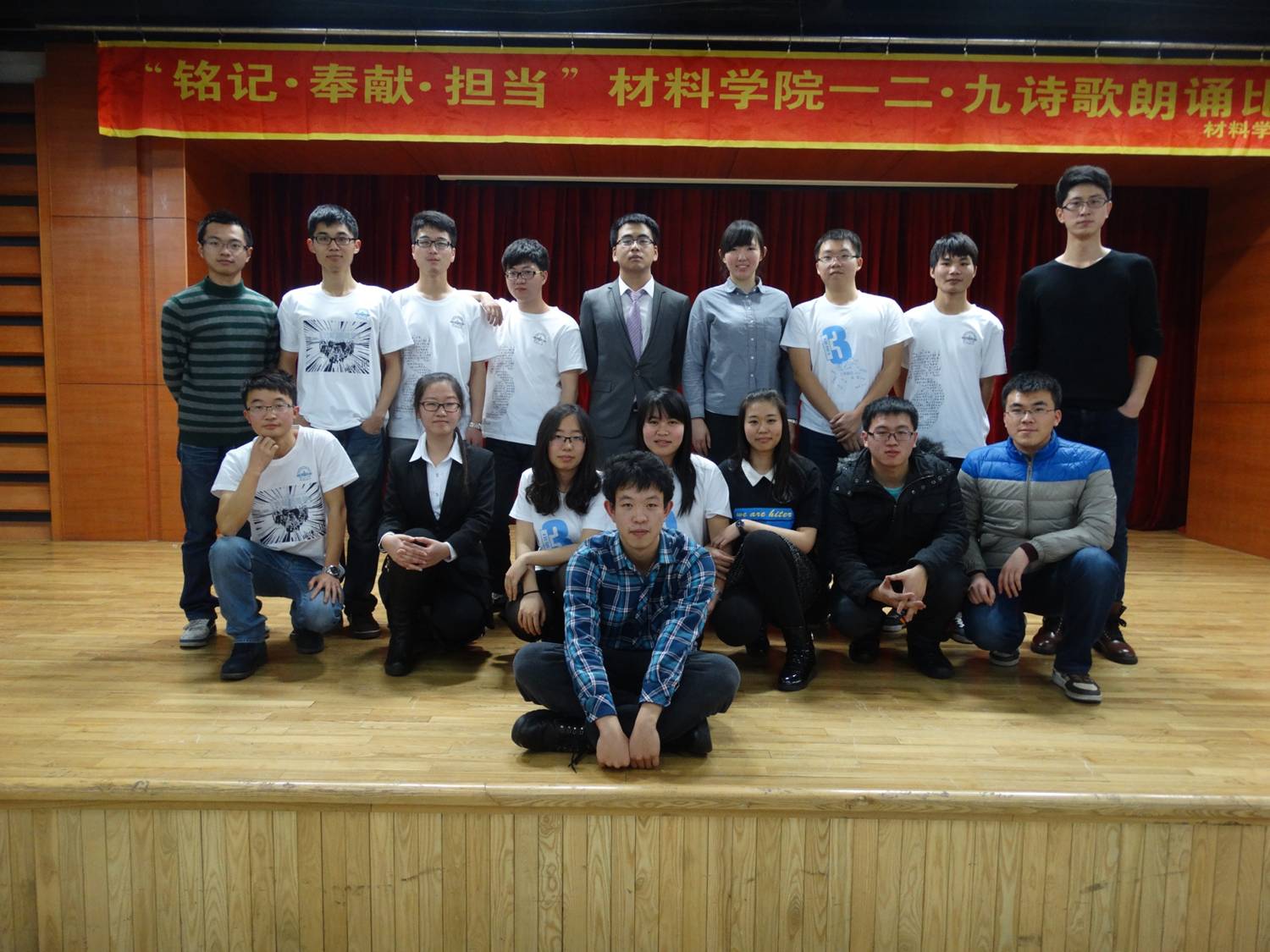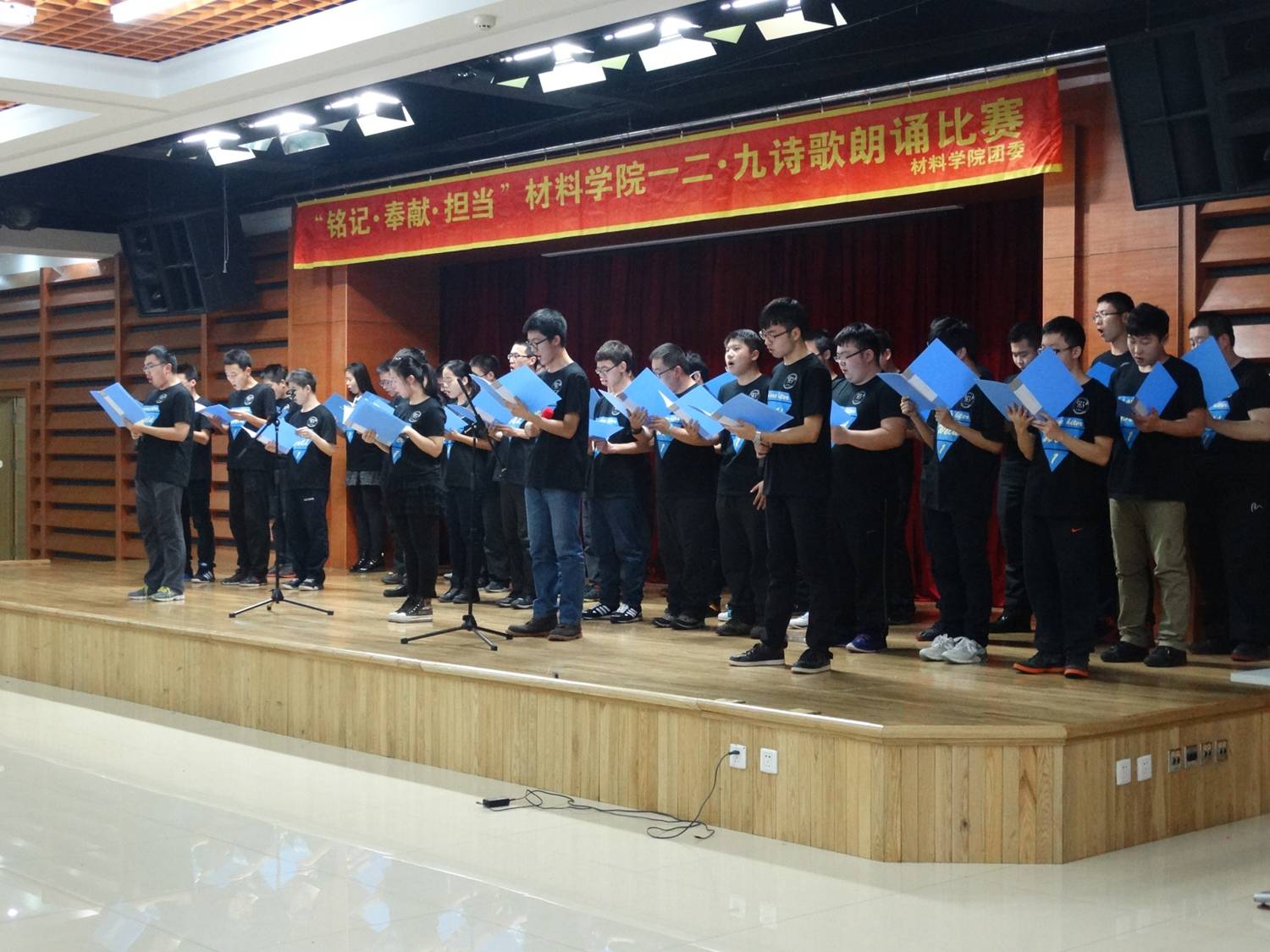 团委主办,以”铭记·奉献·担当”为主题的纪念一二九大型诗歌朗诵比赛在活动中心102礼堂顺利举办。