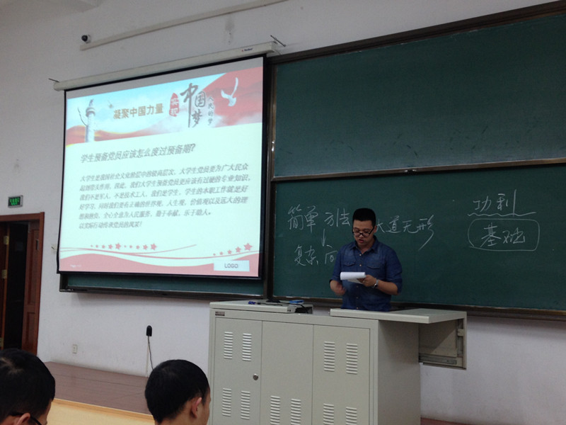 分校2015春预备党员培训班学员讲坛第四讲于正心22顺利举行,讲坛由管委会11本负责人王志杰主持,本次学院讲坛的主题为“预备党员如何度过预备期”,11本的余果、李鑫磊、王志杰和罗佳炜四位同学就该主题进行了精彩纷呈、各具特色的演讲。
