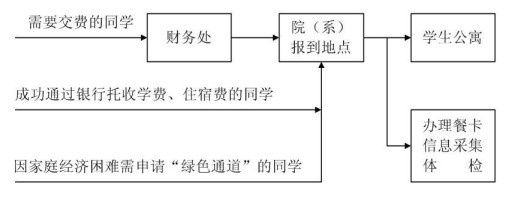 各位同学根据自身的情况,按照下图所示到财务处、学院报到地点等处办理入学事宜。