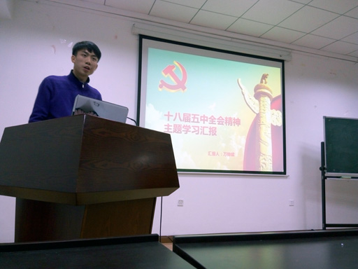 本科年级在材料楼322教室召开了时事政治研讨会,就“中国共产党第十八届中央委员会第五次全体会议公报”全文展开学习讨论。研讨会由本科生腾继良同学主持。