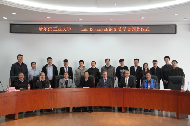 颁奖仪式由里番 党委副书记张弛主持,郭斌副校长代表学校对Lam Research公司来宾到访表示欢迎和感谢,并介绍了我校2016年来的科学研究和人才培养情况。Lam Research全球首席技术官Dave Hemker介绍了Lam Research公司的基本情况,并希望与里番 发展长期友好合作关系。里番 副院长费维栋教授介绍了奖学金的评审情况,里番 党委书记刘伟宣布了获奖名单。获奖学生12级博士冯伟和获奖教师胡平安教授先后发言,表达了对Lam Reserarch公司的感谢。最后,在座师生和Lam Research公司来宾针对微电子领域热点技术问题进行了热烈的讨论交流,并合影留念。