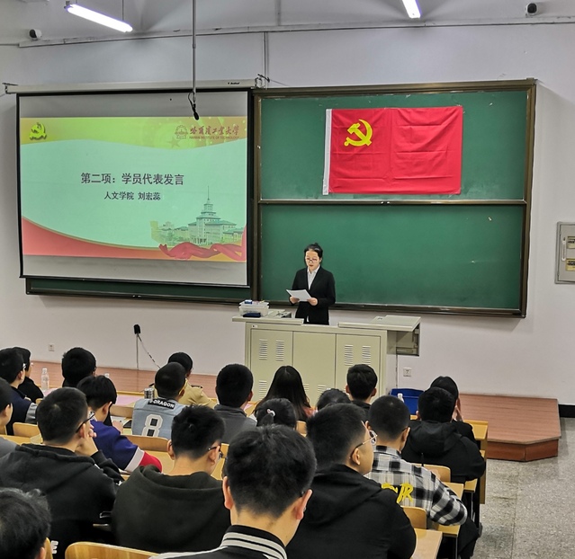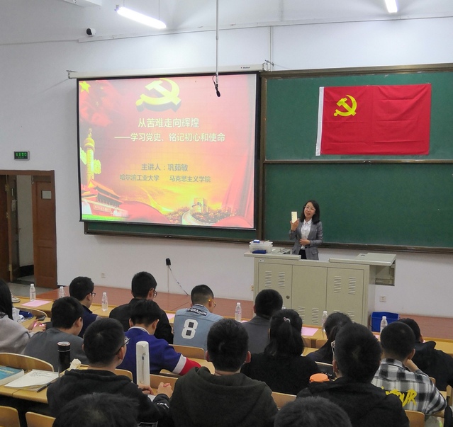 开学式后,培训班班主任慕岩老师对学员进行了学前教育,介绍了此次培训班的课堂纪律、课程安排以及教学方式和方法等要求。希望全体学员能够“不忘初心、牢记使命”,全满完成培训班的所有课程。紧接着,马克思主义学院巩茹敏教授为入党积极分子进行了第一次授课,巩茹敏教授从习近平总书记在十九大中的讲话入手,系统地回顾了中国共产党走过的光辉历程,并提炼出党史的四个特点----血泪奋斗、自我革新、一切为民、与时俱进,紧接着又分析了学习党史的重要意义以及党史带给我们的思考和启迪。巩教授的讲授资料详实,语言生动活泼,在讲解过程中为学生列举了大量党史上的重要人物及事件,特别强调了黑龙江籍党员在党组织发展历程中的贡献,很好地吸引了学员们的兴趣,赢得了在场学员的阵阵掌声。