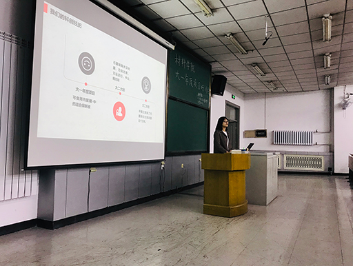首先,17级材料科学与工程专业的应余欣分享了踏实学习、完成大创项目,以第一作者发表SCI的经历,介绍了自己取得的成果,以及在研究过程对科研的理解和感悟,并勉励现场学弟学妹们要时刻保持创新热情,多与老师交流创新想法与实验方法。随后17级焊接技术与工程专业的彭睿分享了在年度项目过程中自己申请两项专利的经历,并从“谋己”“谋人”“谋事”三个方面介绍在大一年度项目项目过程中应如何组建团队、选择导师和课题。