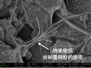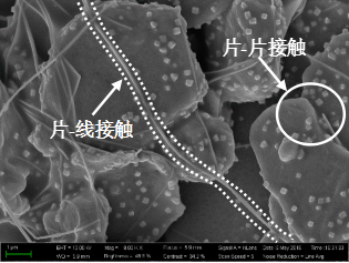 图1片状银覆铜粉/AgNW双组分导电胶的微观形貌
