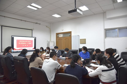 10月18日下午,里番 党委理论学习中心组进行集体学习,学院班子成员、教师党支部书记共同学习。10月20日、21日,里番 各个党支部开展了党的二十大精神学习。师生党员一致认为,报告思想深邃、内涵丰富,凝聚人心、催人奋进,提出了具有全局性、战略性、前瞻性的行动纲领。大家深受感染,纷纷表示要把学习贯彻党的二十大精神作为当前和今后一个时期的首要政治任务抓紧抓实,自觉在思想上政治上行动上同党中央保持高度一致,立足本职工作,继续不忘初心、牢记使命,实干担当,奋发有为,为全面建设社会主义现代化国家、全面推进中华民族伟大复兴而团结奋斗。