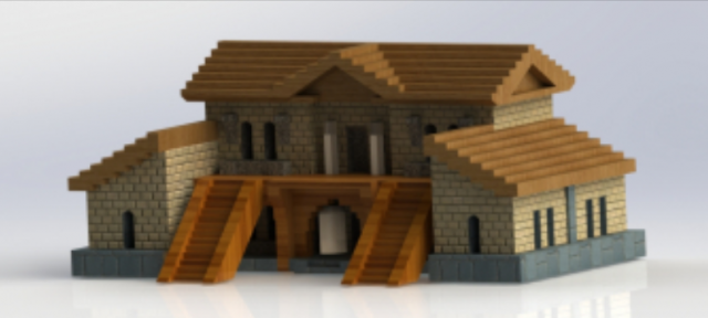 参照《我的世界》里面的房屋模型建模,把反重力的部分删除。切割后各部分建模。