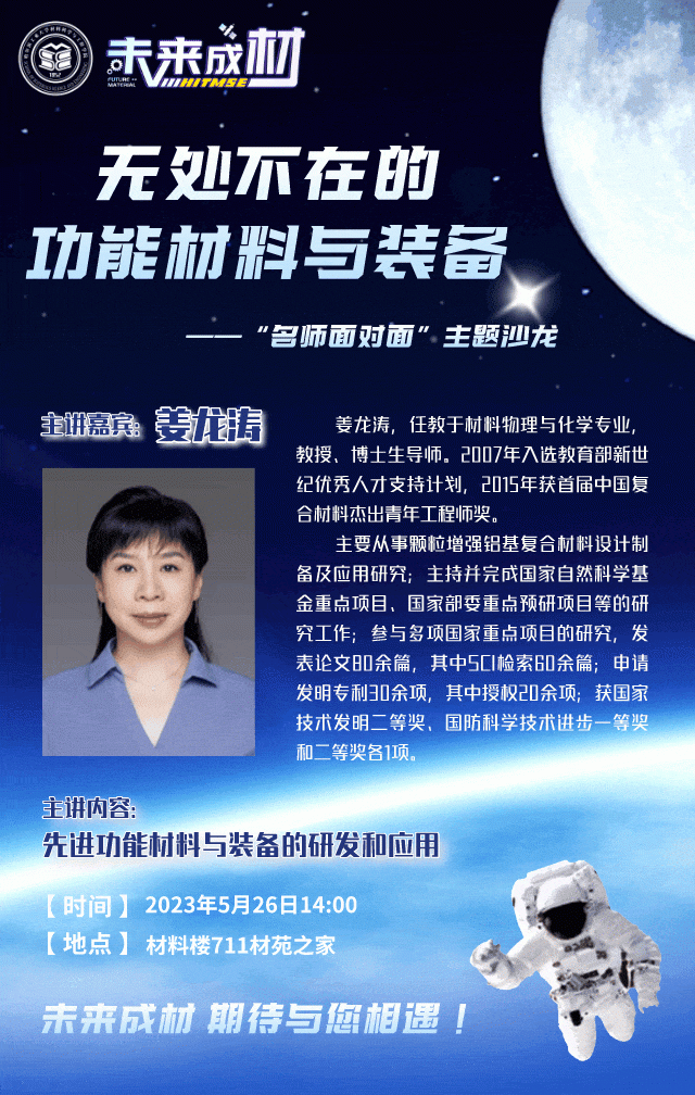 你是否想领略材料之美,感悟材料之蕴?你是否想探索先进材料,助力航天强国?你是否想走进材料前沿,勇攀科学高峰?里番 特面向未来技术学院学生推出“未来成材”主题沙龙活动,邀请名师学长与你面对面畅谈,一同走进材料的奇妙世界。