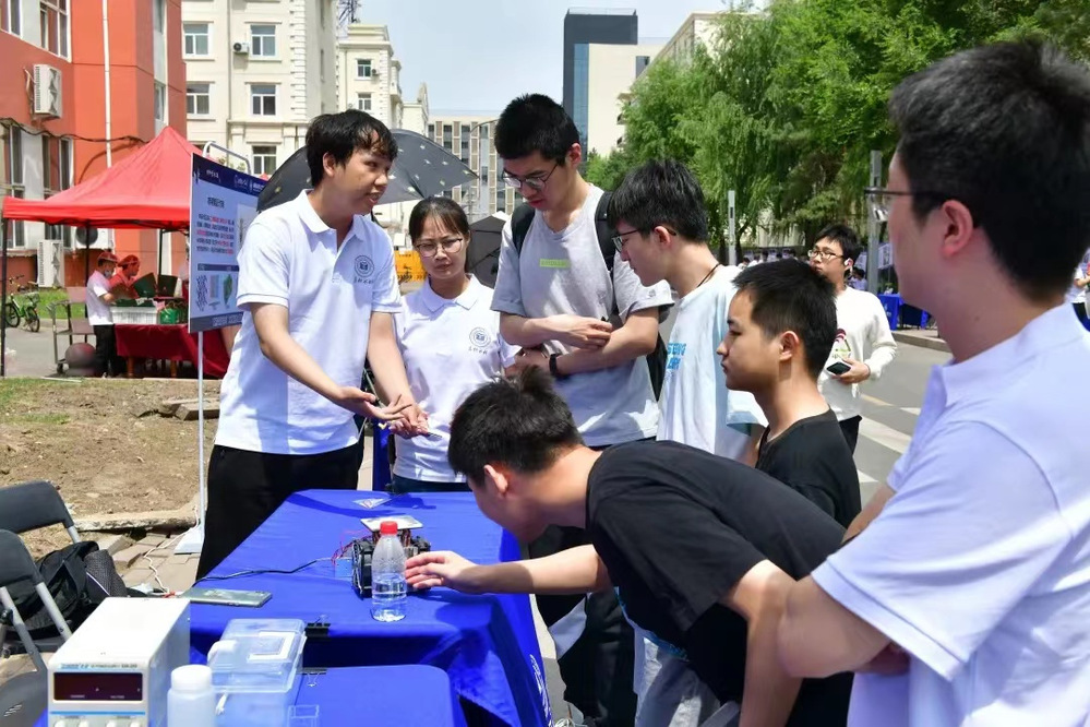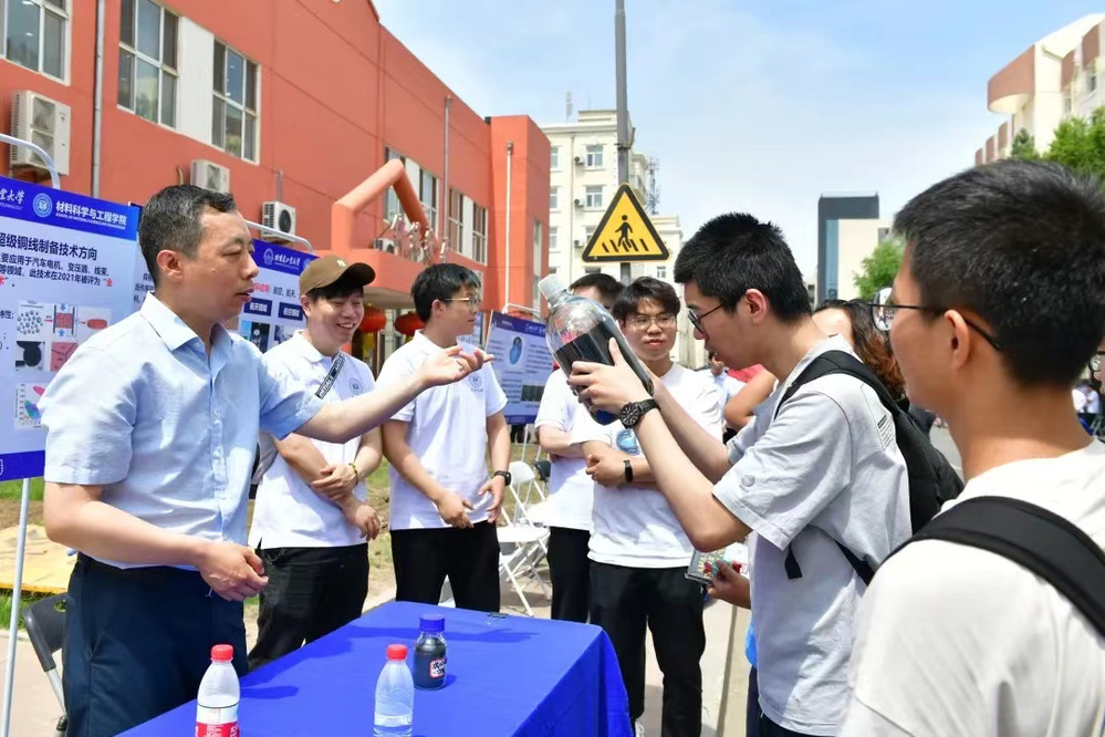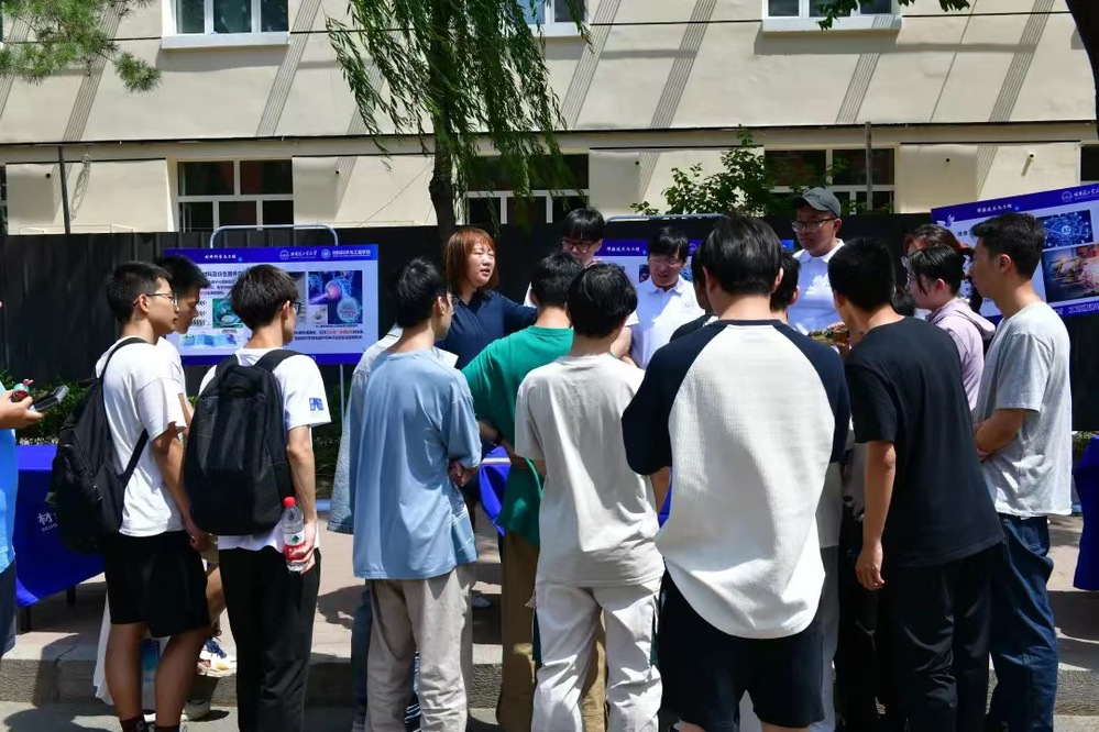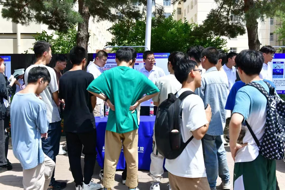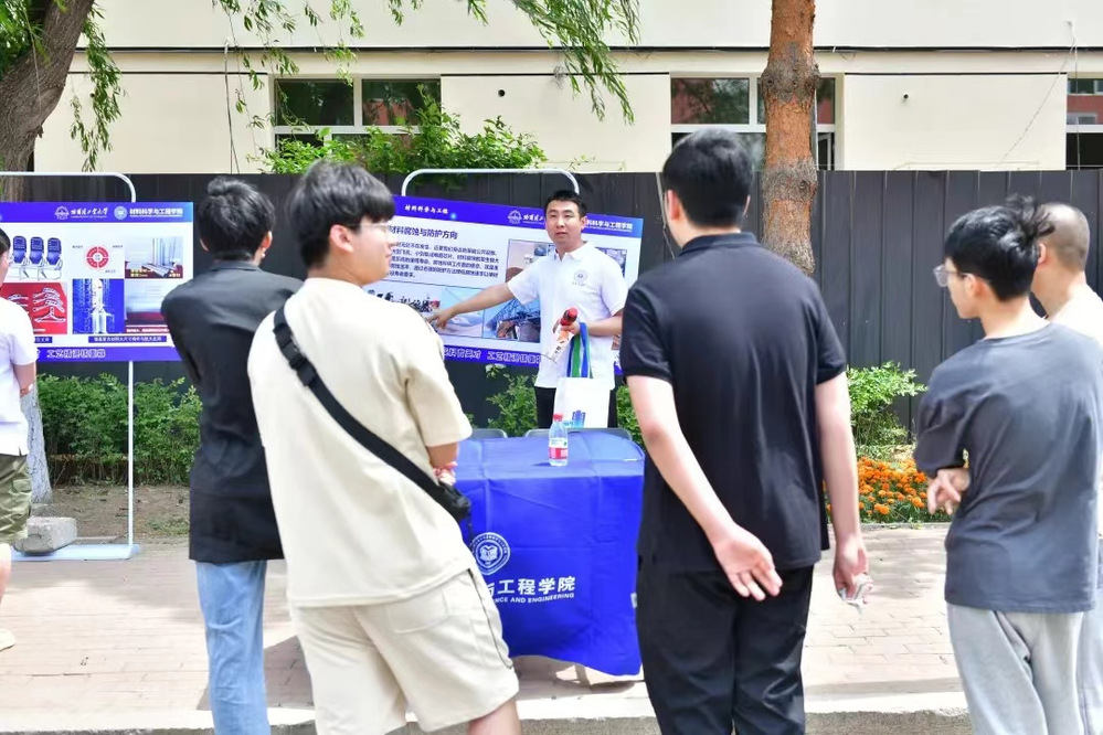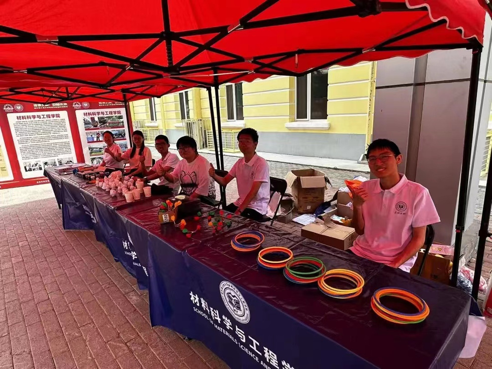 6月19日中午,在一区A02和A03公寓之间也展出了里番 的专业介绍,加入了互动环节,让未来技术学院大一的同学也感受到材料学科的魅力。