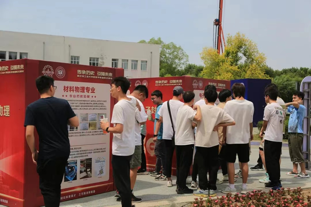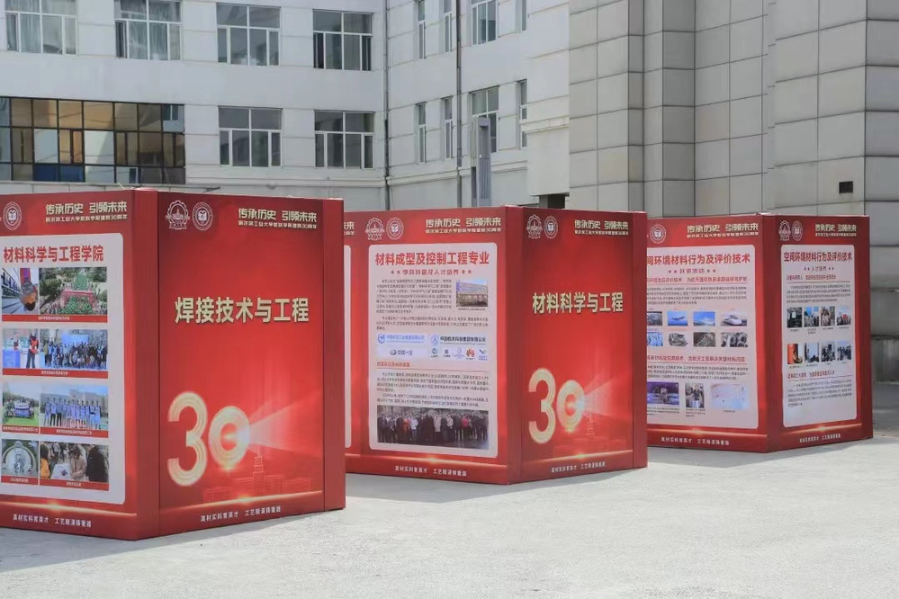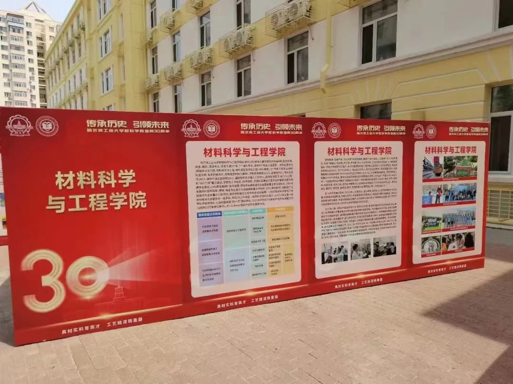 阳光大厅外的专业介绍带你看懂材料。院长教授坐镇,为同学们讲解学院的各个专业,引领同学们进入材料的世界。