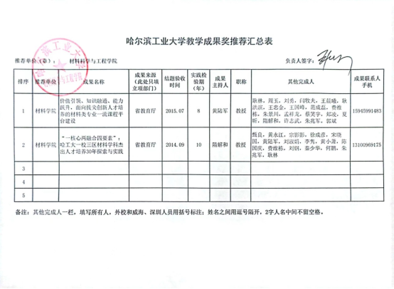 材料科学与工程学院2023年里番 教学成果奖申报材料公示通知