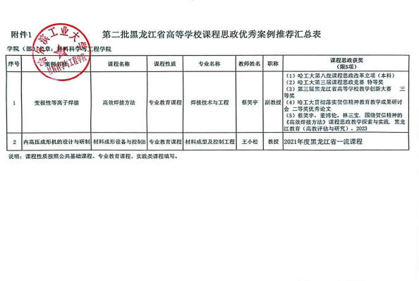 材料科学与工程学院第四批校课程思政示范课程和教学团队培育项目及第二批黑龙江省本科高校课程思政优秀教学案例申报材料公示通知