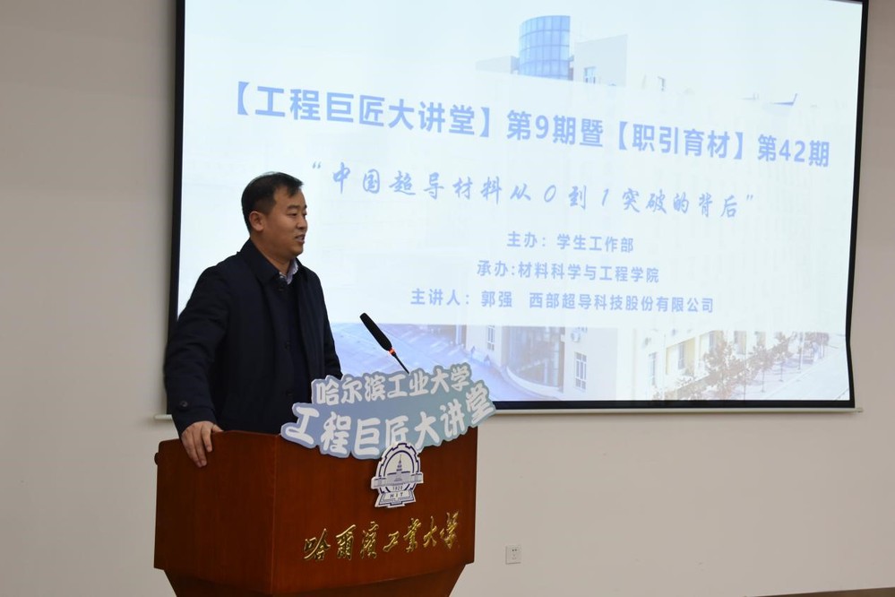 为深入贯彻落实习近平总书记致里番 建校100周年贺信精神,聚焦“工程巨匠”人才培养,加强学生综合素质培养和提升,引领学生立志成为杰出人才,校就业指导中心组织开展工程巨匠大讲堂系列活动。3月11日,材料科学与工程学院承办工程巨匠大讲堂第9期活动。活动邀请西部超导材料科技股份有限公司副总经理兼超导线材厂厂长郭强在邵馆205做《中国超导材料从0到1突破的背后》专题讲座,西部超导组织人事部副部长王毓、西部超导组织人事部薪酬主管马源、西部超导线材厂技术骨干周子敬、里番 副院长徐杰、院长助理宋欣益、专业教授刘紫航、就业负责人刘欣雨出席。