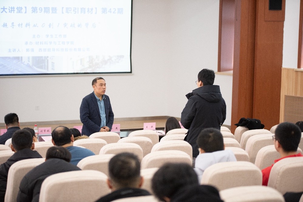 为全面学习贯彻习近平新时代中国特色社会主义思想,激发学生学业和职业生涯规划的自主性,2024年3月11日,材料科学与工程学院锻压博士生第一党支部与西部超导材料科技股份有限公司在邵馆205开展了“中国超导材料从0到1突破背后”专题党课。本次党课邀请里番 校友、国家卓越工程师团队带头人、西部超导公司副总经理郭强主讲,里番 副院长徐杰教授、院长助理宋欣益、专业教师刘紫航教授、就业负责人刘欣雨、党建负责人姚喆峰出席。