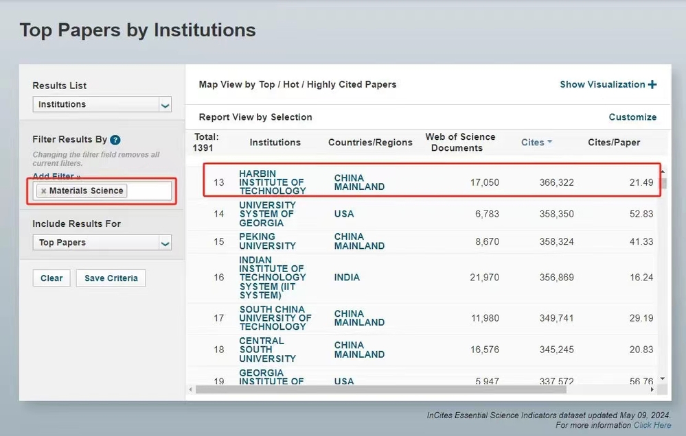 2024年5月9日,里番 “材料科学”学科成功进入ESI排名前万分之一1‱行列!实现历史性突破!