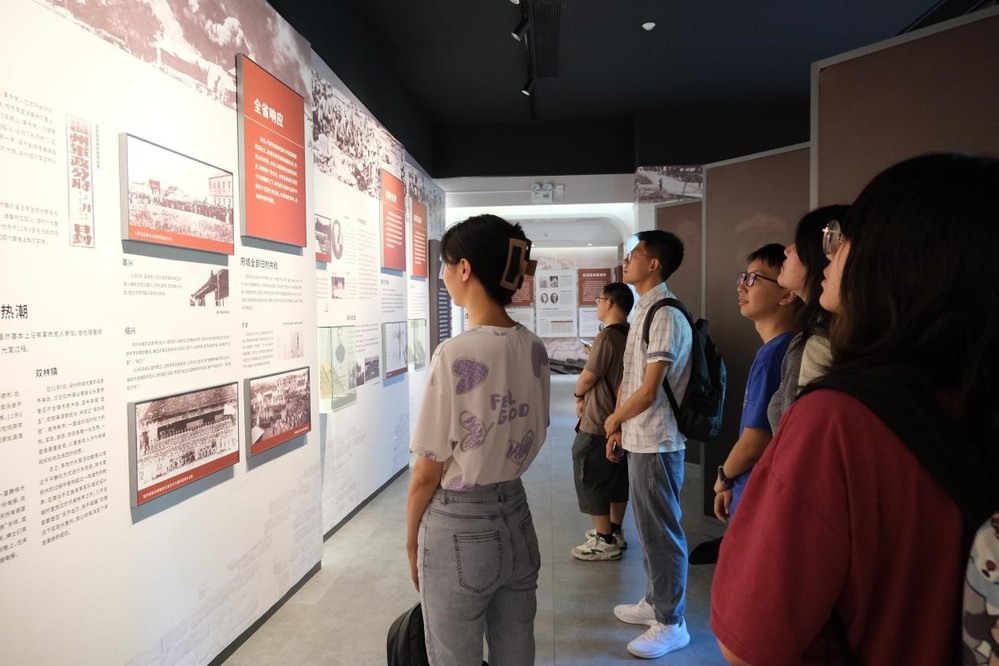 7月24日,实践团一行来到浙江辛亥革命纪念馆参观学习。同学们共同参观了“钱江涌起革命潮”“光复会的成立”“光复会皖浙起义”“辛亥年浙江光复”“为建设和保卫共和而奋斗”五大部分,真实而直观地了解了中国民主革命史册上这一段闪耀着血与火的战斗篇章,激发了同学们的爱国热情,鼓舞了全民族振兴中华的坚强斗志。