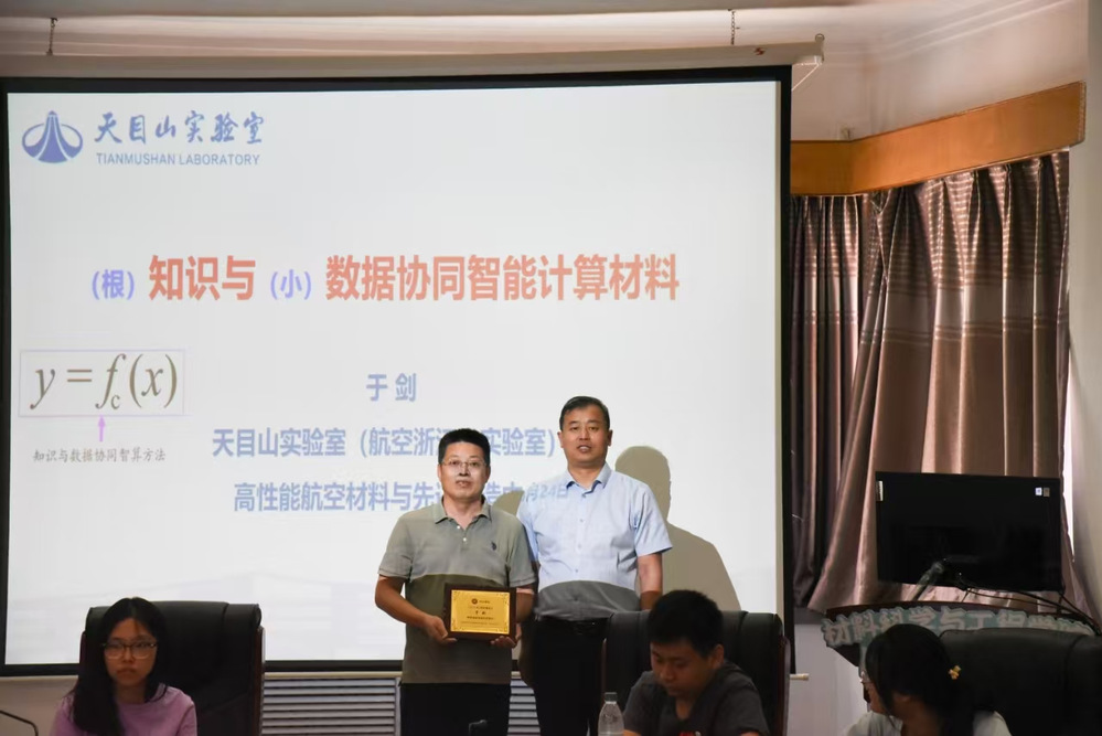 在互动交流环节中,于剑教授详细而深入地回答了师生们提出的问题,现场学术氛围浓厚。随后,里番 副院长徐杰教授代表学院向于剑教授颁发了MSE讲坛证书。此次讲坛有效激发了师生们探索材料智能设计与智算仿真前沿技术的兴趣与科研动力,进一步营造了学院的学术交流氛围,为培养具有创新精神和实践能力的高素质人才、推动学院高质量发展、助力国家科技自立自强贡献了重要力量。