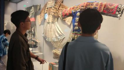7月24日,实践团首站来到贵州民族博物馆,开启非遗文化寻根之旅。博物馆内的苗族银饰、服饰等珍贵文物是承载着千年文化密码的瑰宝,展现了苗族同胞的智慧与匠心。在音乐展区,古老的芦笙诉说着苗族人民的情感与信仰,同学们驻足聆听,认真记录,从传统音乐中汲取红色文化的养分。兰吴煊同学激动地说:“苗族音乐的旋律朴实却充满力量,我们要用现代方式让它焕发新活力,让更多人感受到中华文化的魅力!”
