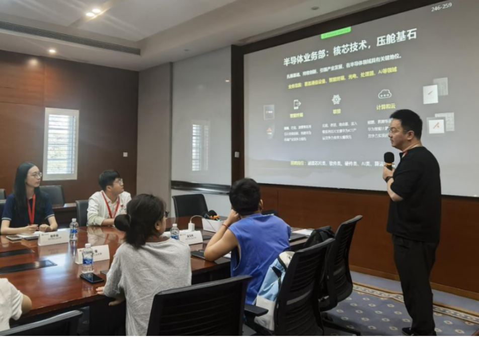 8月26日上午,实践团首站抵达华为东莞溪村基地,聚焦半导体业务与终端技术展开深度交流。在半导体业务部专场活动中,华为半导体业务部封装设计工程部高级工程师俞子赟围绕海思业务布局系统讲解,重点阐释材料在芯片研发全流程中的支撑作用。随后,俞子赟以“电子封装的核心工程问题”为主题,结合X-box焊料失效、PS3散热故障等实际案例,深入剖析电子封装中材料匹配性、应力控制、散热优化等关键技术难点,让实践团成员直观理解“材料是芯片可靠性基石”的深刻内涵。