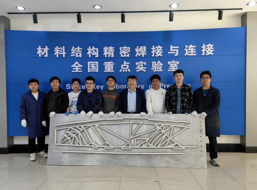 针对大型复杂高性能铝合金、镁合金结构件采用整体锻造或铸造与机加工制造周期长、成本高、材料利用率低等技术瓶颈问题,团队突破了丝材连续送进、稳定塑化、致密沉积与组织调控等关键核心技术,研制了连续送丝搅拌摩擦固相增材制造技术与成套装备,实现了铝合金、镁合金、复合材料等多谱系材料的高效、柔性连续固相沉积,用于米级、百公斤级轻质合金结构件的稳定制造,构件力学性能可达到同质锻件水平。成果应用于航空飞机带筋壁板、航天运载火箭叉形环及铝钢增压输送管路、镁合金异型舱体等,标志着固相增材制造从实验探索向工程化制造能力的跨越。凭借该项自主研发成果,团队已获授权国家发明专利34项,登记软件著作权10项,发表ESI高被引论文10篇。
