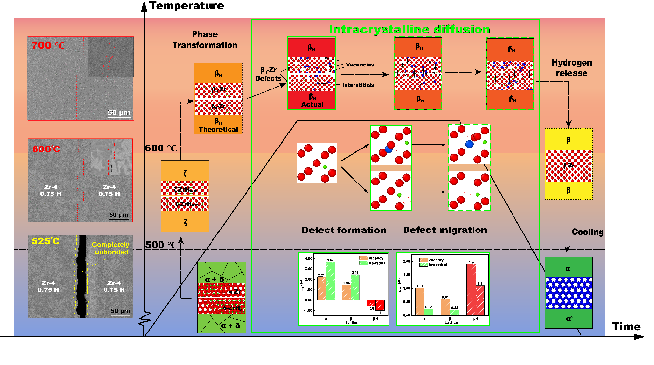 Zr-4合金凭借低热中子吸收截面、优异耐蚀性能和适中力学性能是唯一水冷核反应堆包壳材料。新型核燃料包壳因其焊缝多、焊缝间距小、焊缝重叠的特征必须采用超低温扩散连接工艺。合金置氢辅助扩散连接被认为是最为适用的低温连接方法。然而,对于氢化合金实现低温扩散连接的物理机制研究仍处于猜想阶段。